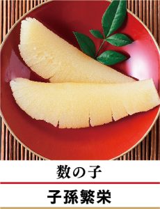 数の子はニシンの卵。二親から子が多く出ることから子孫繁栄を願うおせちの縁起物。