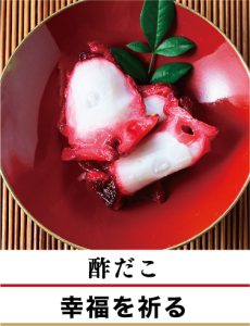 多幸(たこ)はゆでると紅白になるため、多くの幸せや魔除け、苦難を煙に巻く。