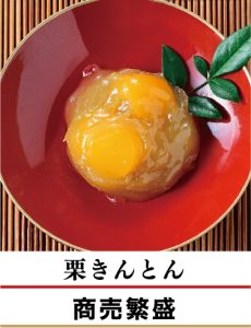 きんとんは金色の団子の意。金銀財宝を意味し、金運や商売繁盛を願うもの。
